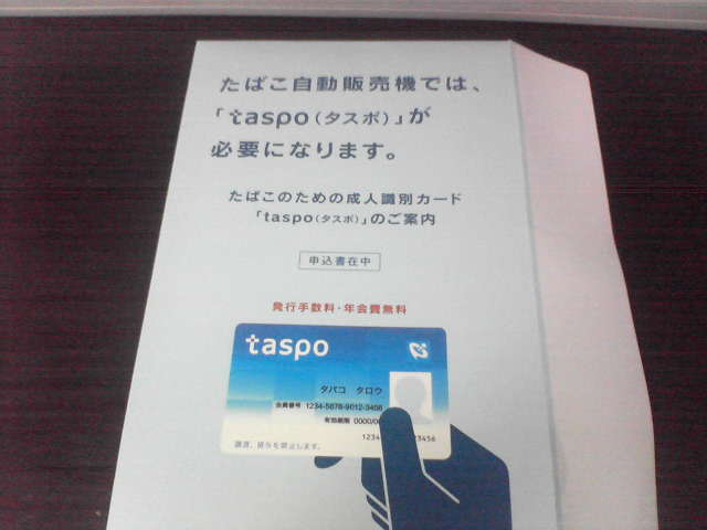 タバコの自販機購入の認識カードの申し込みの案内らしい。