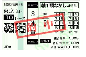 やっぱ、3連単は1頭軸マルチが一番相性がいい。なんとか20万馬券取りました。
