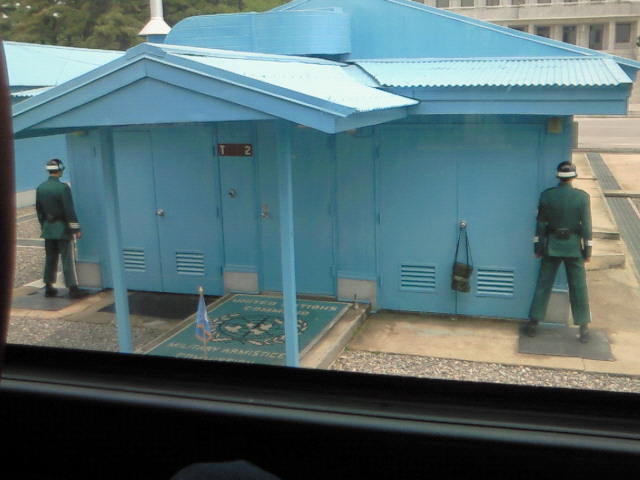 写真の緑の制服の兵隊は韓国側国連軍の監視役。ここに立てるのは軍人の中でも超エリートと聞きました。
